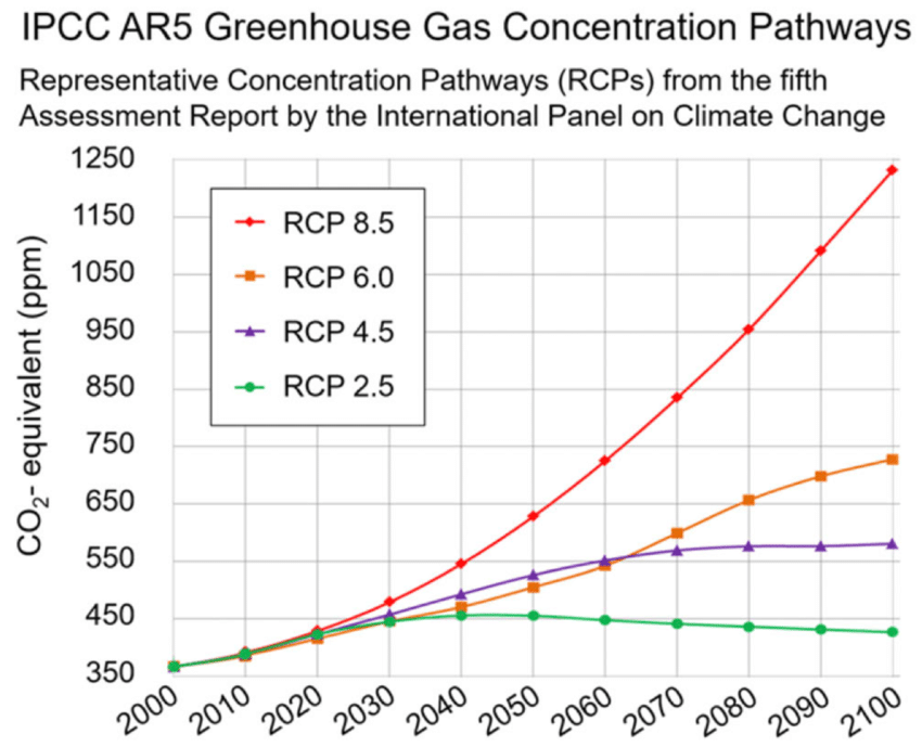 - RCPs were introduced by the IPCC in their Fifth Assessment Report (AR5) to outline four different scenarios of greenhouse gas emissions, atmospheric concentrations, air pollutant emissions, and land use in the 21st century.