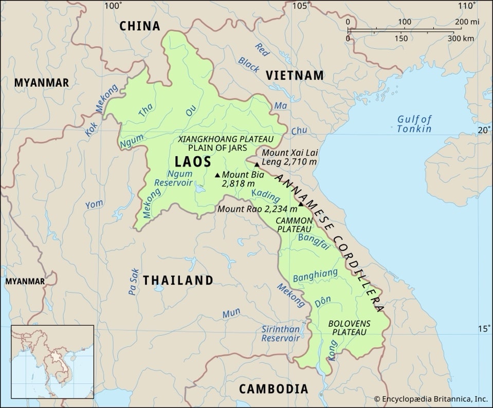 - Mountain Ranges: Annamite Range, Luang Prabang Range