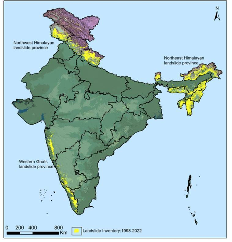 - The Northwest Himalayas account for 66.5% of landslides in India.