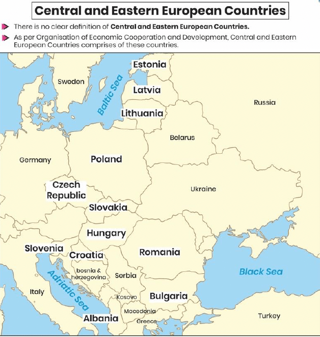• Strategic Engagement: India has expanded its diplomatic and economic presence in Central and Eastern European (CEE) nations.