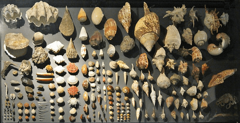 • Univalve Shells: Found in gastropods, these are typically single, coiled shells. Common in snails, the shells spiral around a central axis.