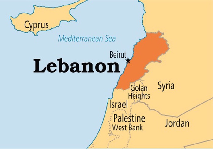 - उत्तर और पूर्व में सीरिया, दक्षिण में इज़राइल और पश्चिम में भूमध्य सागर सीमाएँ।