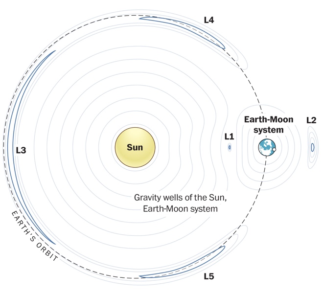 - वे मुख्य रूप से लैग्रेंज पॉइंट L1, L2 या L3 से जुड़े हैं।