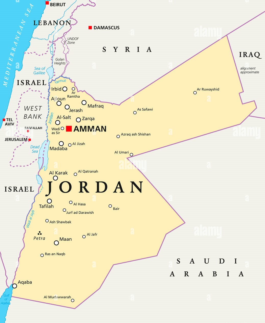 - Bordering water bodies include Jordan River, Dead Sea, Gulf of Aqaba