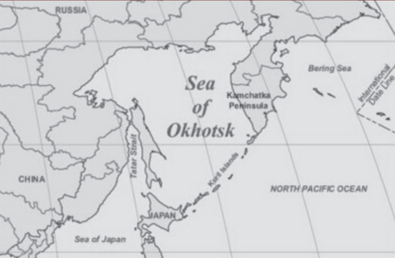 - The Sea of Okhotsk is surrounded by the Kamchatka Peninsula and the Kuril Islands to the east and southeast, the northern coast of Hokkaido in Japan to the south, and Sakhalin Island to the southwest.