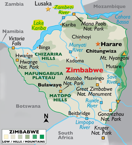 - Located between Zambia and Zimbabwe.
