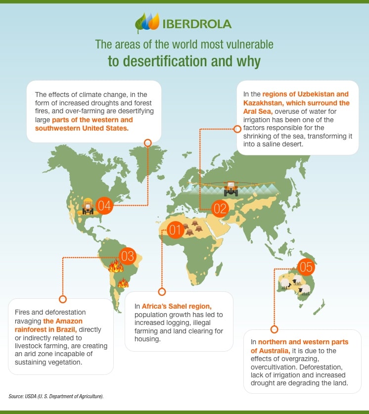 - It is the spread of arid areas caused by a variety of factors, such as climate change and overexploitation of soil as a result of human activity.