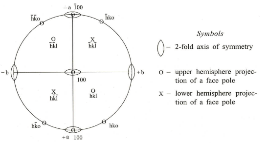 Geology 1a Which crystallographic system does the crystal represented by the stereogram above belong to? What faces constitute pinacoid form? What form do the general faces {hkl} belong to? Which of the projected faces are parallel to the c-axis? (IFS 2017/8 Marks)