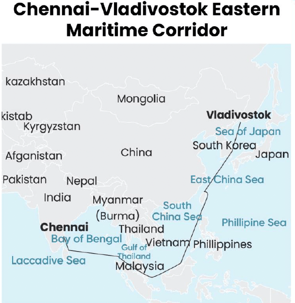 - Designed to establish a sea route connecting Chennai in India with Vladivostok in Russia through Northeast Asia.