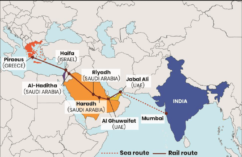 - India-Middle East-Europe Economic Corridor (IMEC): Announced at the G20 Leaders’ Summit (2023, New Delhi) to connect Asia, Europe, and the Middle East.