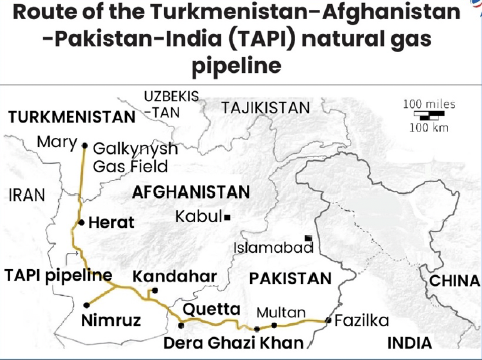 • TAPI Pipeline: Conceived in the mid-1990s, this pipeline is intended to carry natural gas from the Galkynysh gas field in southeastern Turkmenistan.