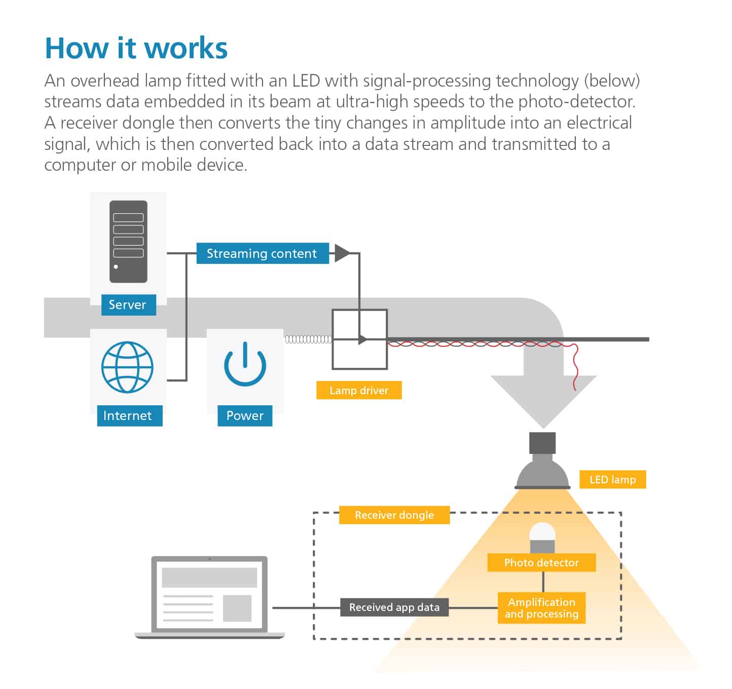 - संचार के लिए दृश्य प्रकाश का उपयोग करते हुए द्विदिश वायरलेस सिस्टम।