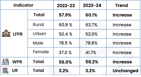 - PLFS की स्थापना 2017 में प्रमुख रोजगार और बेरोजगारी संकेतकों का अनुमान लगाने के लक्ष्य के साथ की गई थी।